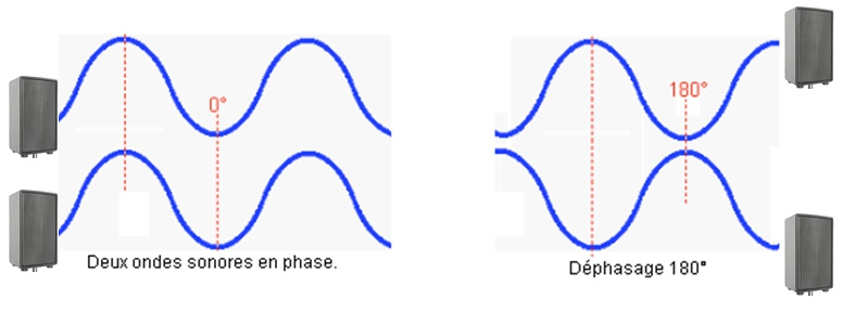 Phase shift : This is identical to that known in electronics. When two speaker broadcast toward to the same point are not wired in phase, loss of sound pressure level can appear by the addition of the two waves.