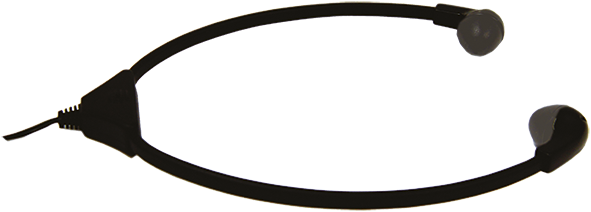 Stethoscopic headset weighing less than 30 g, with ergonomic ears that gently marry the forms of the auditory conduit. For connection to specific receivers, such as PR-22 +