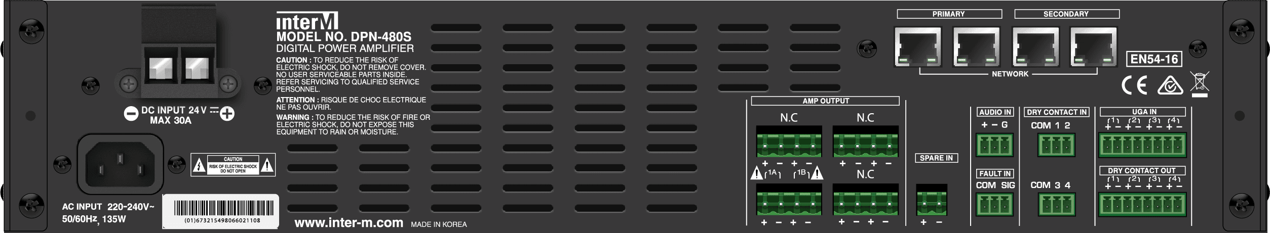 Power | 1 x 480W RMS @ 70V/100V Class D Load Min 41.6Ω, Capacity Min 0.01uF | |