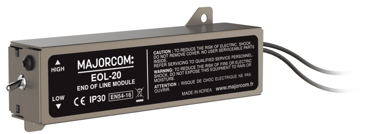 Where impedance measurements may not detect a disconnected loudspeaker (depending on the number of loudspeakers and the type of cable), the EOL-20 provides a highly reliable solution to always report the correct status of the loudspeaker lines.