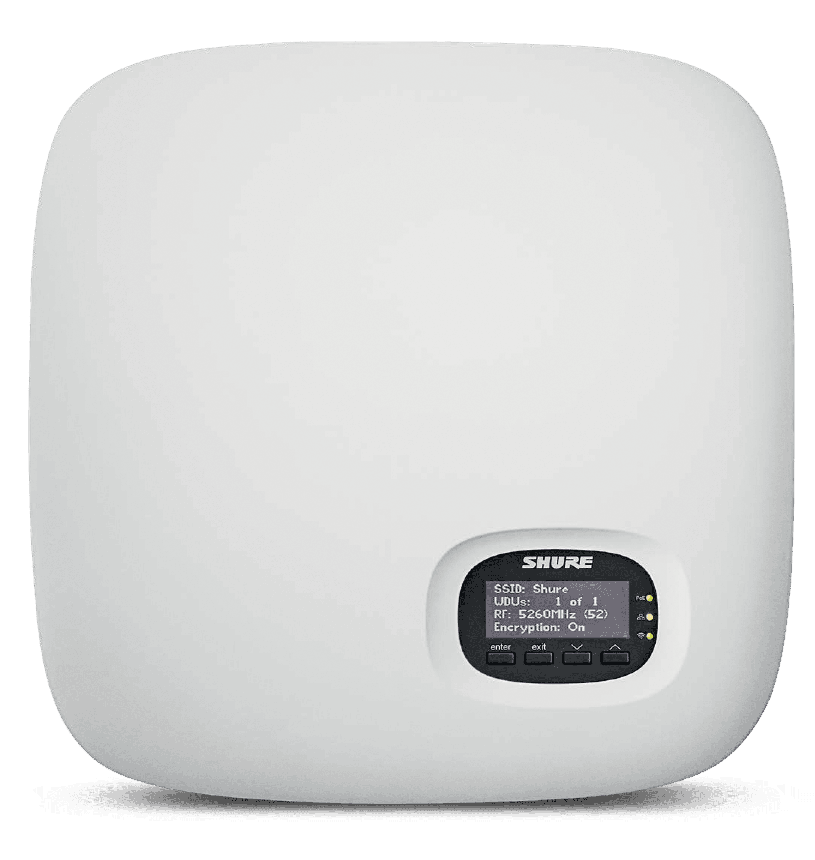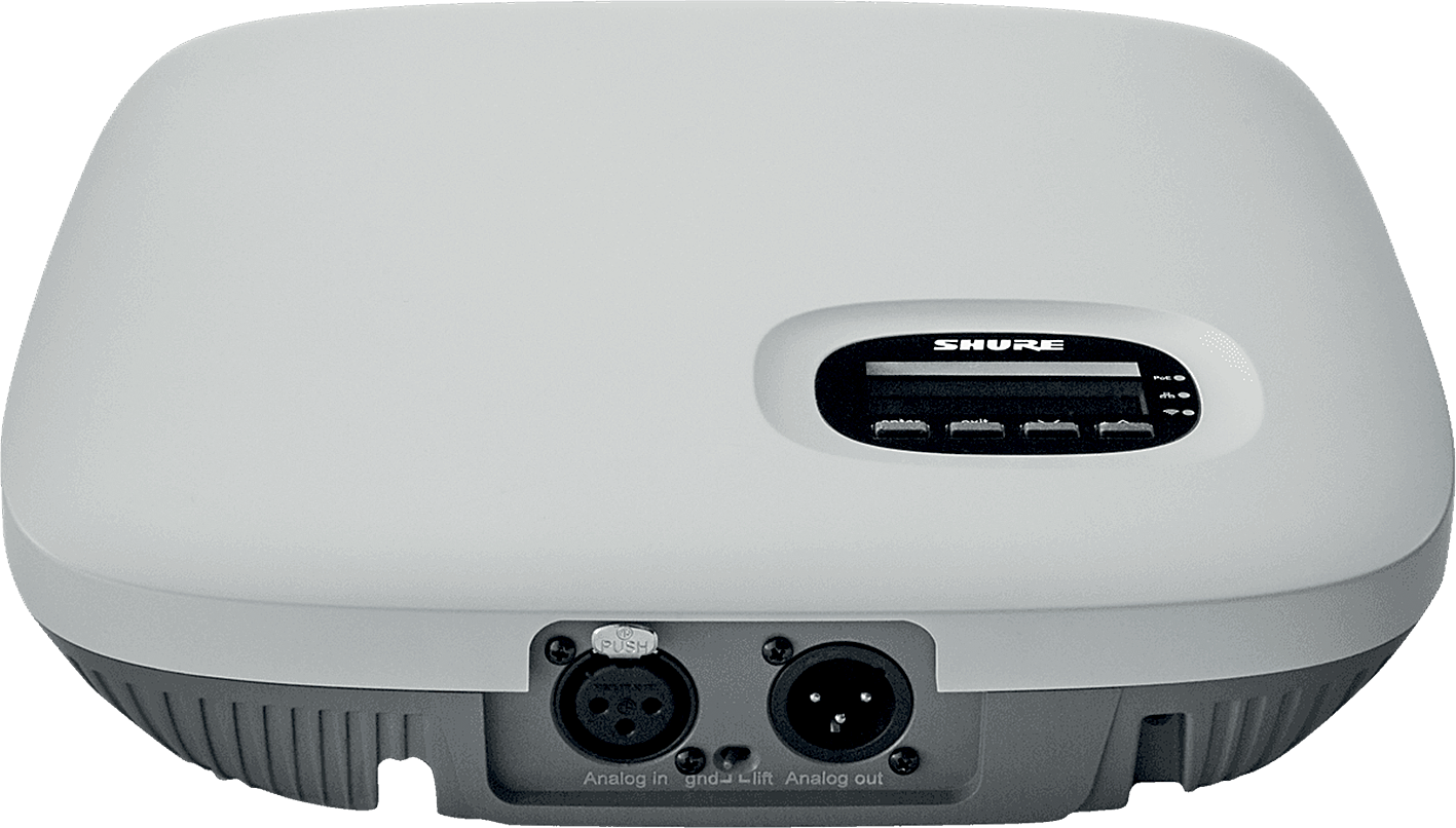 The MXCWAPT Access Point Transceiver manages audio routing, frequency coordination, and system control for up to 125 MXCW640 wireless conference units.
