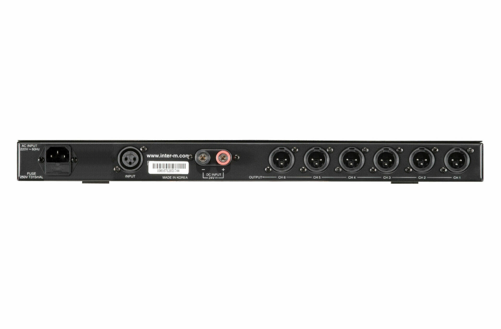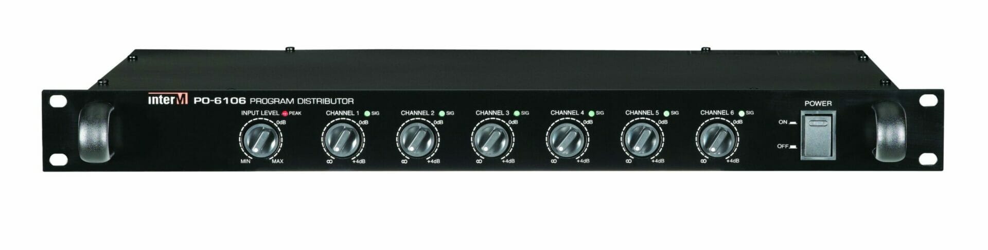 Audio splitter with 1 balanced input and 6 balanced outputs with level control.