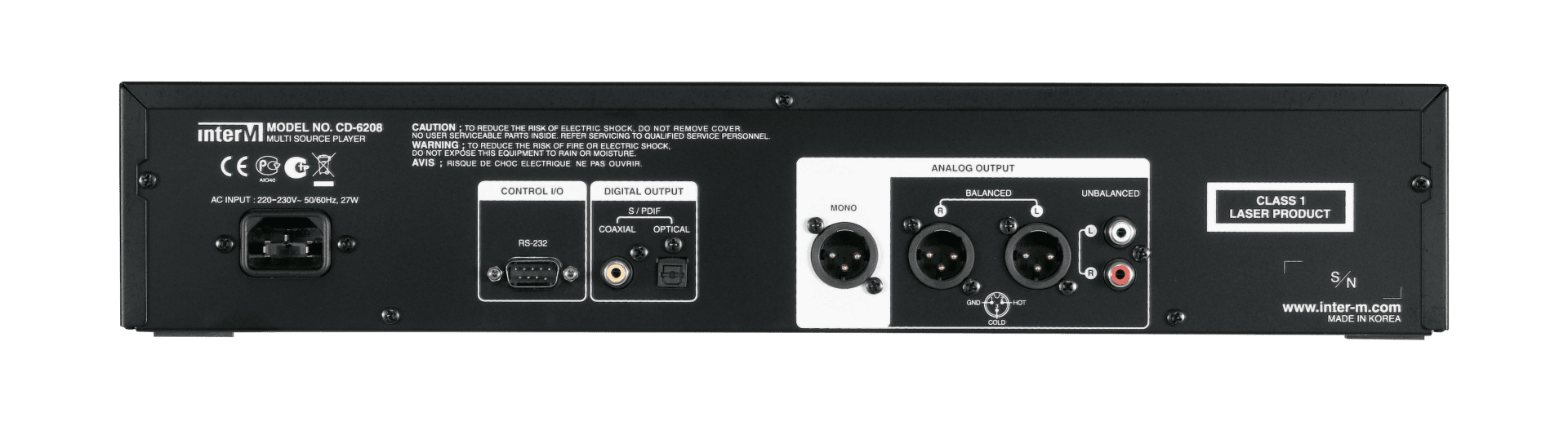 • Il dispose d’une sortie stéréo (XLR symetrique et RCA asymetrique), mono (XLR), coaxial et optique.