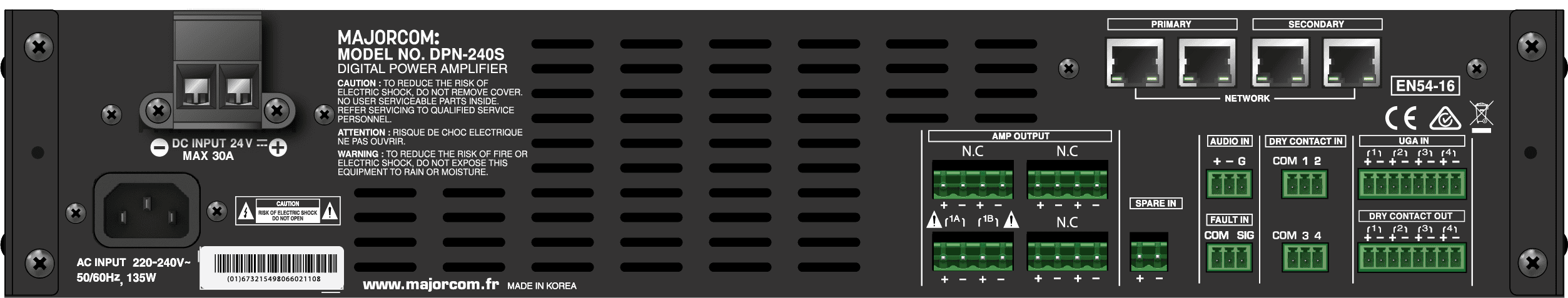 Puissance | 1 x 240 W RMS @ 70 V/100 V Classe D Charge Min 41.6 Ω, Capacitée Min 0.01uF | |
