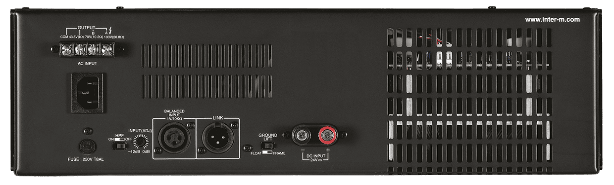 Les modèles sont disponibles dans une variété de puissance de sortie, 120, 360 et 480 watts puissance de sortie en basse impédance 8/4 ohm et en haute impédance 70/100V en utilisant des transformateurs à faible distorsion. Ils sont le choix idéal pour le renforcement sonore, la musique de fond et les appels micros.