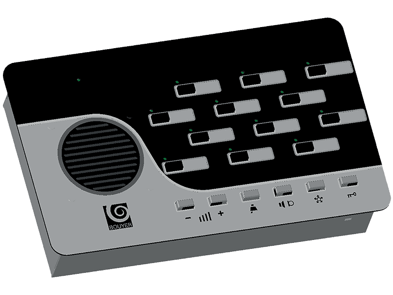 - Le PC-2104 est un poste chef d’interphonie qui peut être relié à 12 postes secondaires.